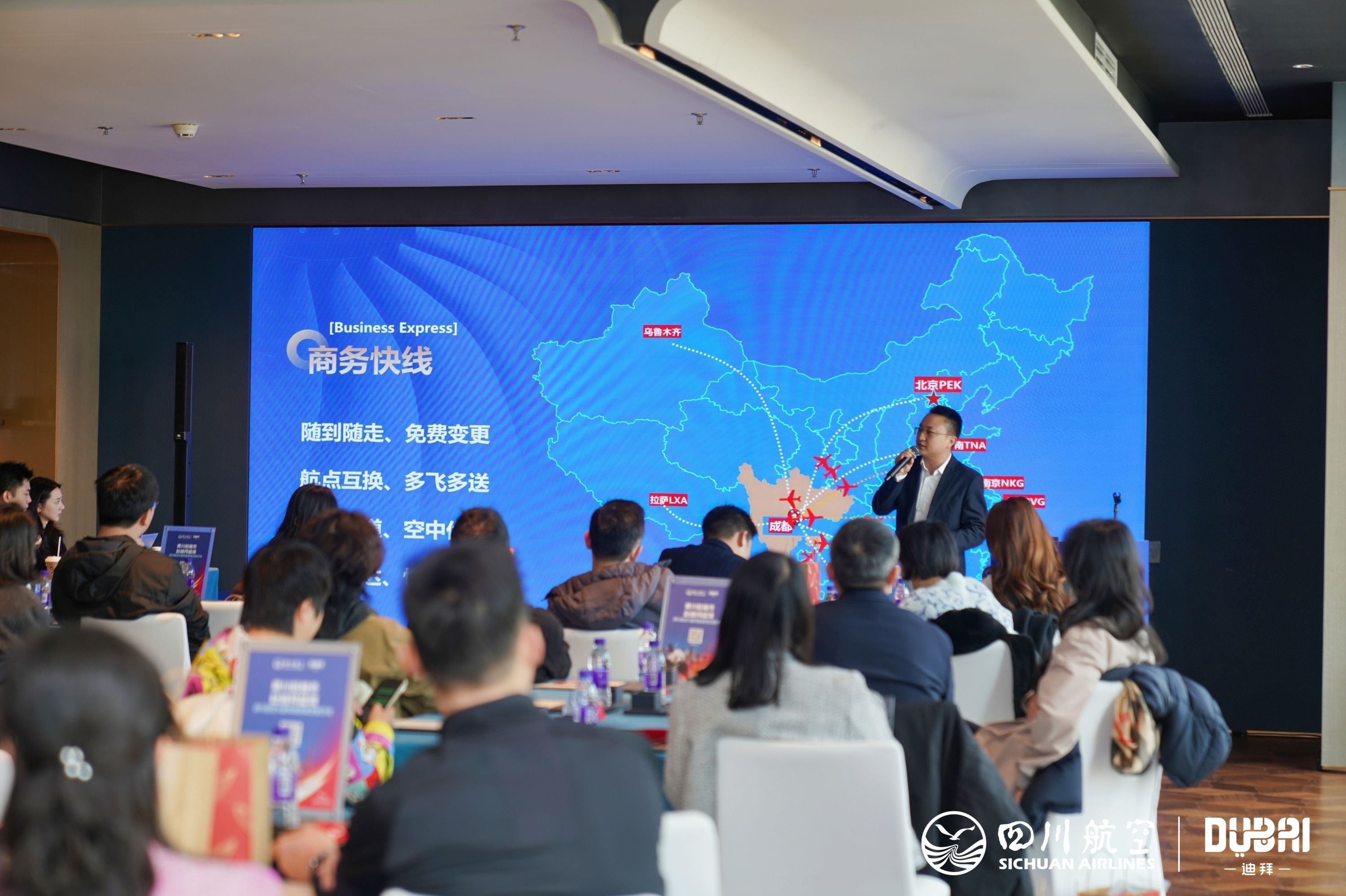 12月5日,由四川航空与迪拜旅游局聚拢打造的定制沙龙行径在成王人举办。本次行径以“乘川航暖冬,赴迪拜盛境”为主题,汇注了川航高端会员、旅游怜爱者以及联系从业者,通过航路推介、研讨地共享、互动体验等形态,为现场极品导航嘉宾搭建起千里浸式疏导平台。