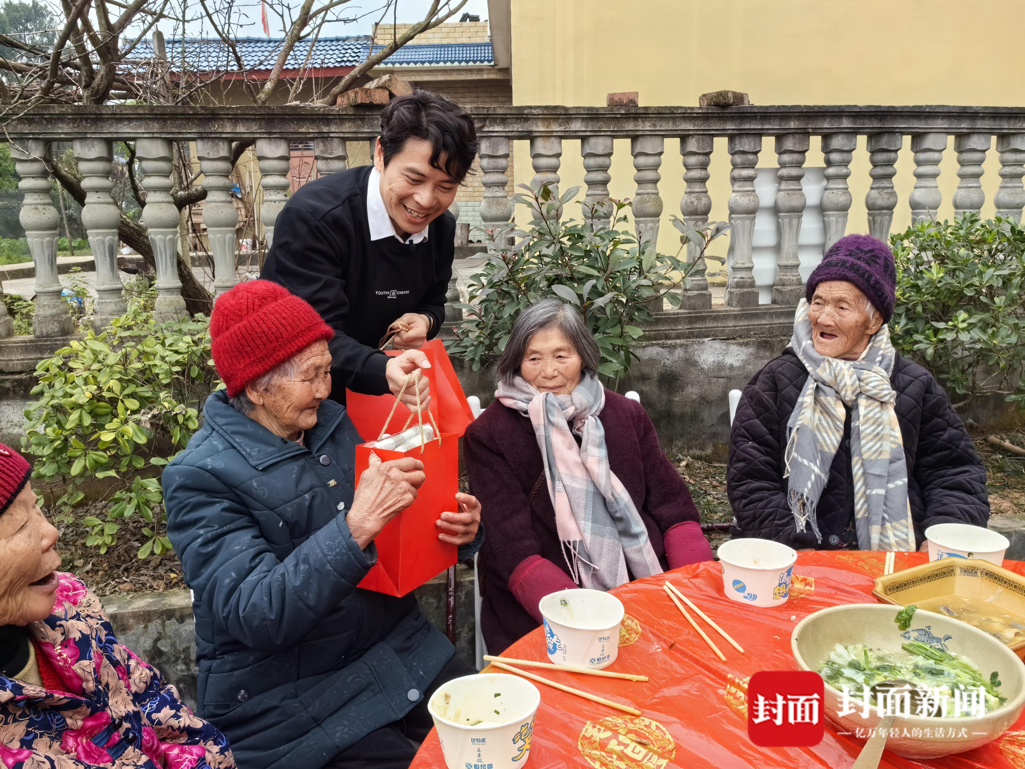 长岭村村支两委为了这次步履,更是提前经营和准备,在帮扶单元省委网信办的援助下,为村里80岁以上老东谈主悉心准备了防寒领巾,中午还邀请参预领略会的年青东谈主陪老东谈主们全部用餐。