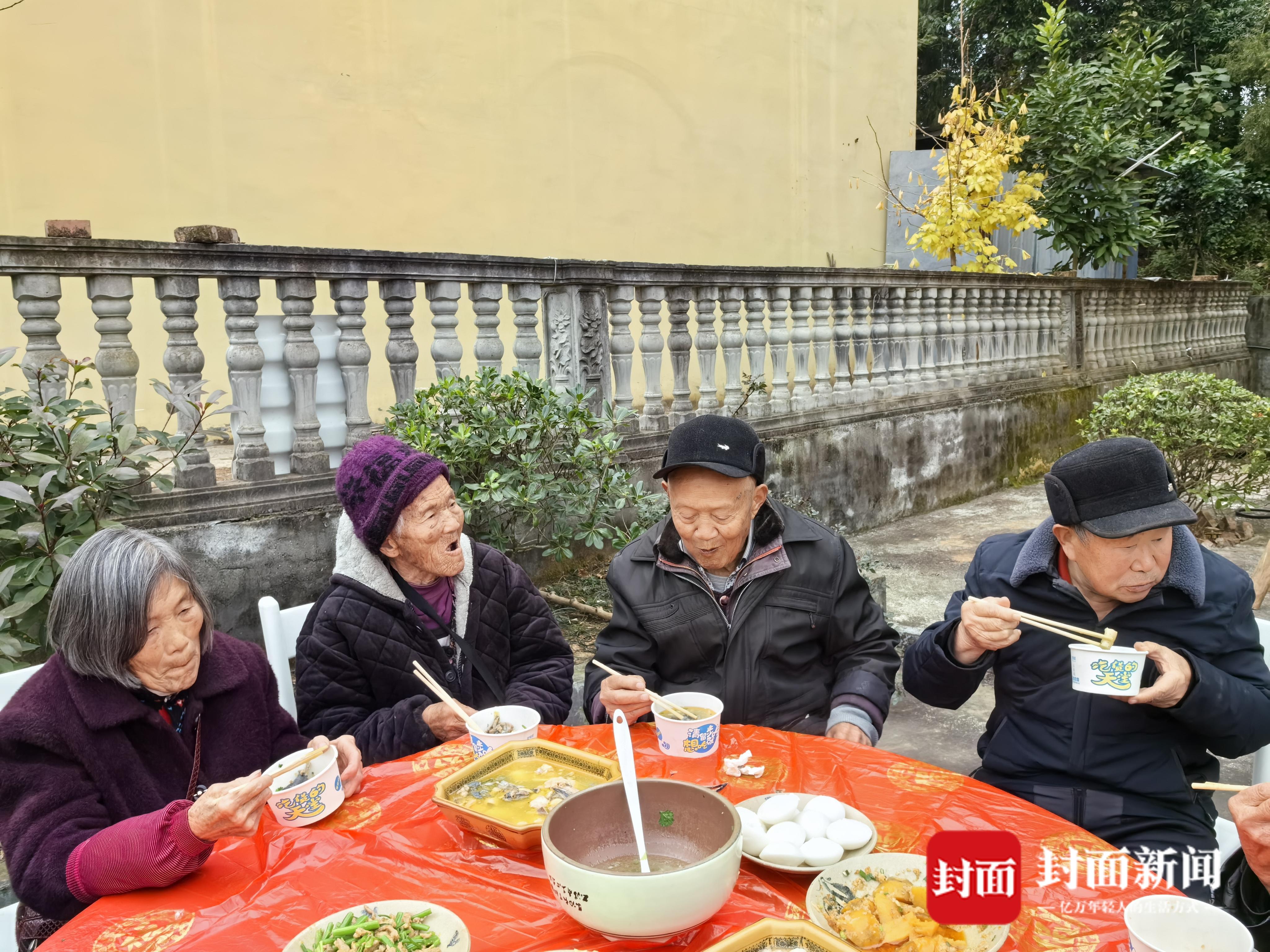 中午12点,准时开饭,老东谈主们和村里的年青东谈主围坐在全部。陈奶奶直言,好久没这样扯后腿吃过饭。