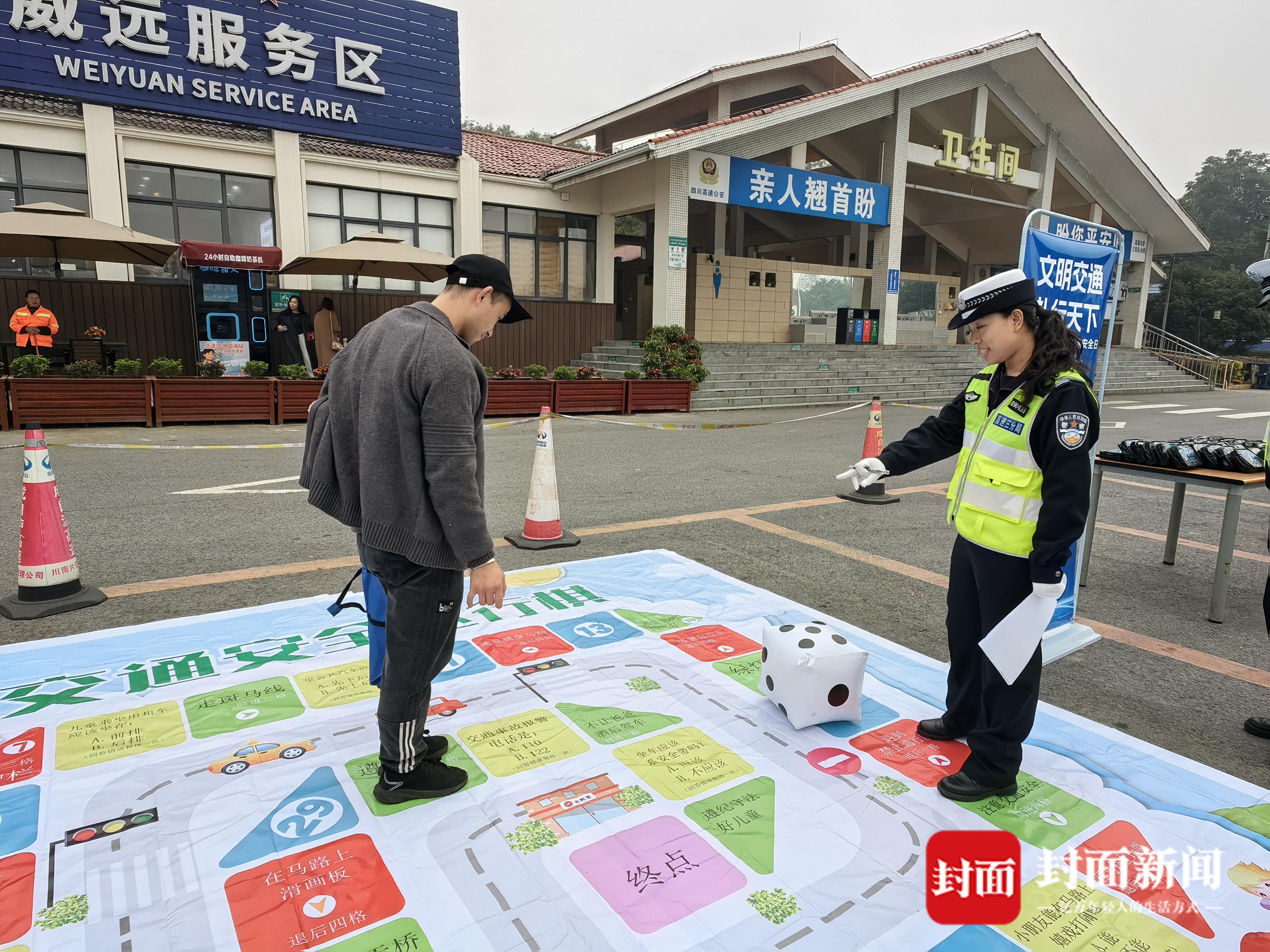 12月2日,在第十四个“宇宙交通安全日”到来之际,四川高速公安三分局统筹部署,组织分局一大队、二大队、九大队、十六大队及二十二大队聚积步履,于蓉遵高速威远职业区全心打造了一场以 “雅致交通 礼行寰宇”为主题的交通安全宣传嘉年华手脚。转盘识记号、飘舞棋闯关、学问问答等道理手脚递次演出,让过往人人在欢声笑语中成绩高速公路交通安全学问。
