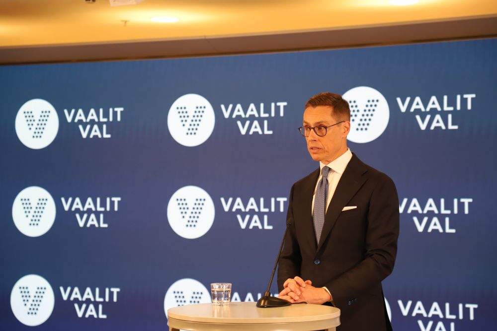 2024年2月11日,在芬兰赫尔辛基市政厅,斯图布与海外媒体碰头并回话问题。新华社记者陈静摄