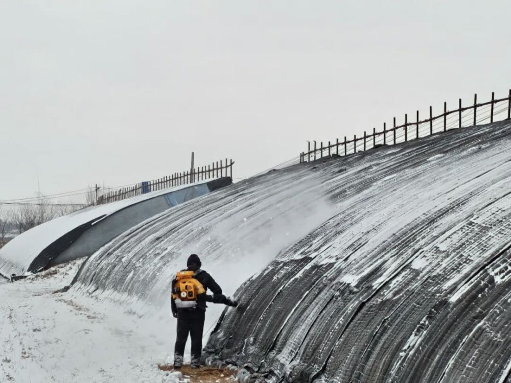 在辽宁省铁岭县药王庙村,记者看到一些蔬菜大棚被积雪障翳,农户们正忙着在棚间除雪,有的搭起梯子用吹雪机吹扫棚顶积雪,有的用铲雪锹清运棚外残雪。“当今雪下得还不大,生怕雪来得又急又大,压坏了大棚。”村民张秀芬说。