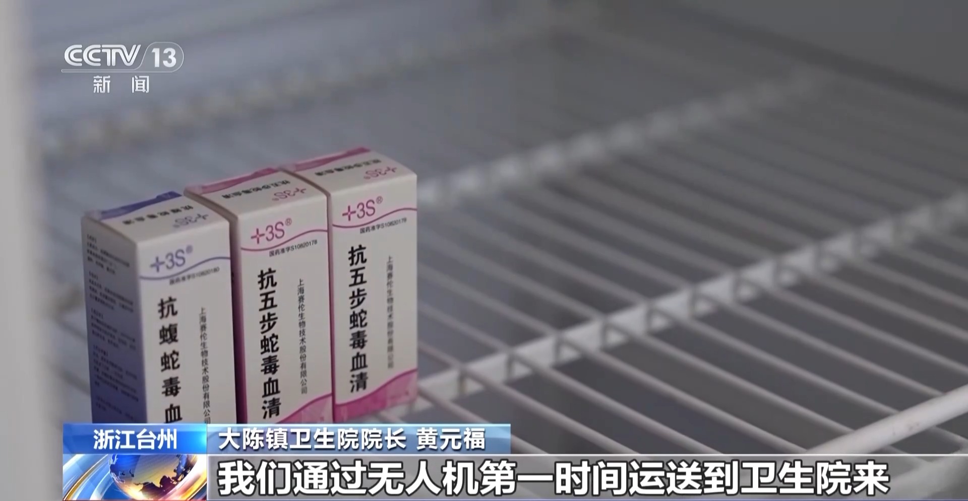 大陈镇卫生院院长 黄元福:像这些蛇抗毒血清,还有一些疫苗,咱们通过无东谈主机第一时刻输送到卫生院来,为紧要病东谈主的救治争取了珍爱时刻。