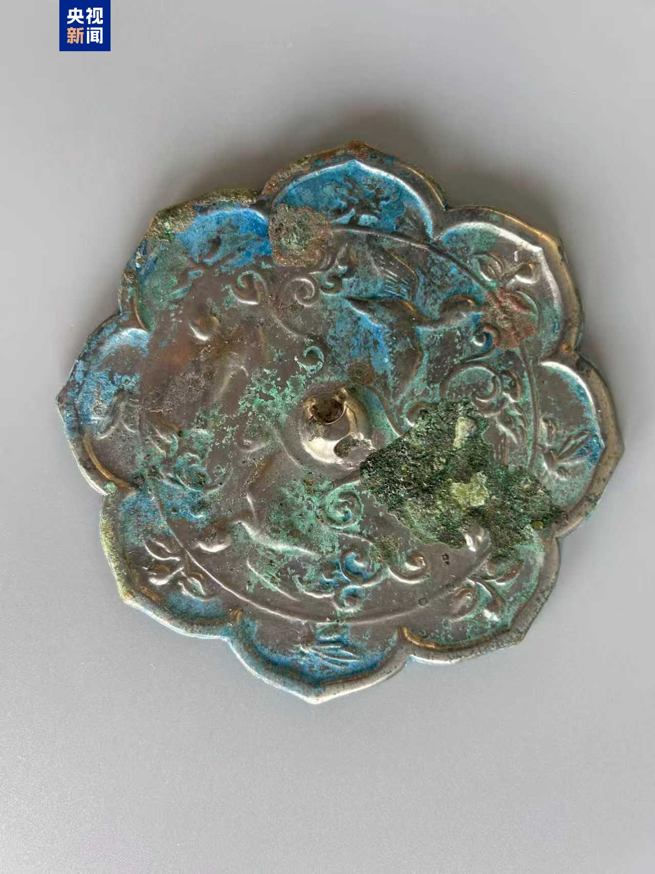 铜镜呈八瓣菱花形,菲律宾修车群内切圆形,圆纽,纽左近饰鸟纹与花枝纹,缘内蜜蜂、花叶相间胪列。