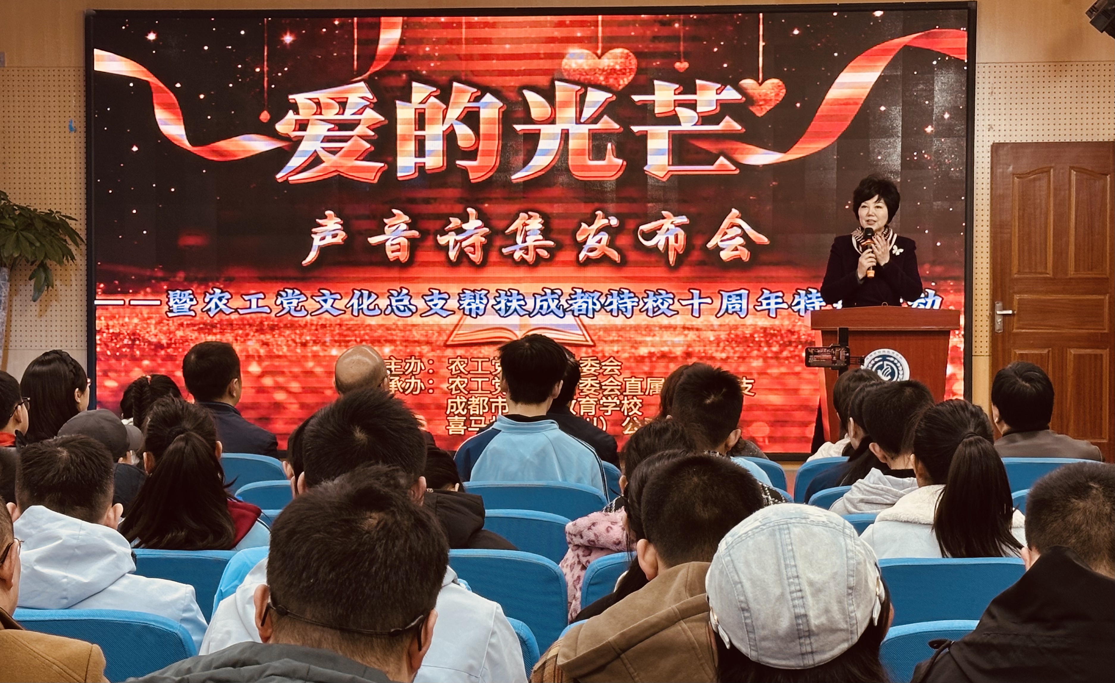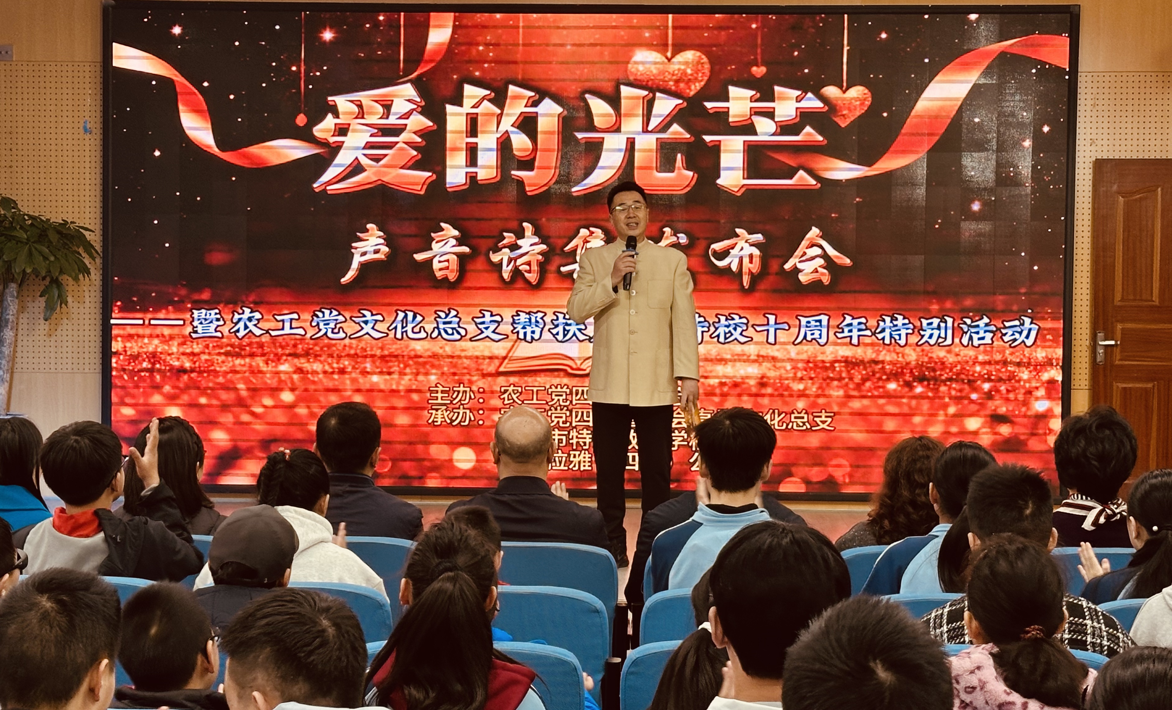 10年帮扶,见证坚抓的力量。在12月3日海外残疾东谈主日驾临之际,12月1日下昼,一场缓和飘溢、兴趣潜入的很是行径在成都缓和启幕。由“爱的光线”声息诗集发布会——暨农工党四川省委会直属文化总支帮扶成都市很是教育学校十周年很是行径在成都特校举行。