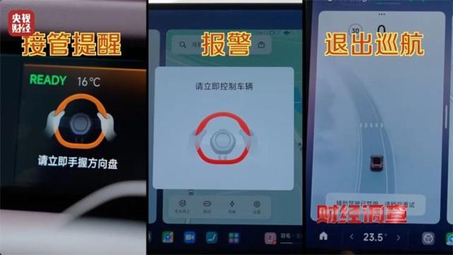 记者来到公安部交通管制科学谈判所,奴才检测东说念主员,在紧闭路段进行双手离开所在盘的测试。20秒后,车辆屏幕出现了“请手执所在盘”的字样,发出袭取提醒,在驾驶东说念主莫得袭取它的情况下,车辆随后发出报警声息,屏幕字样变成“请立即手执所在盘”,这时,驾驶东说念主还不处理,汽车会获胜教唆“请立即截止车辆”,并退出接济驾驶功能。