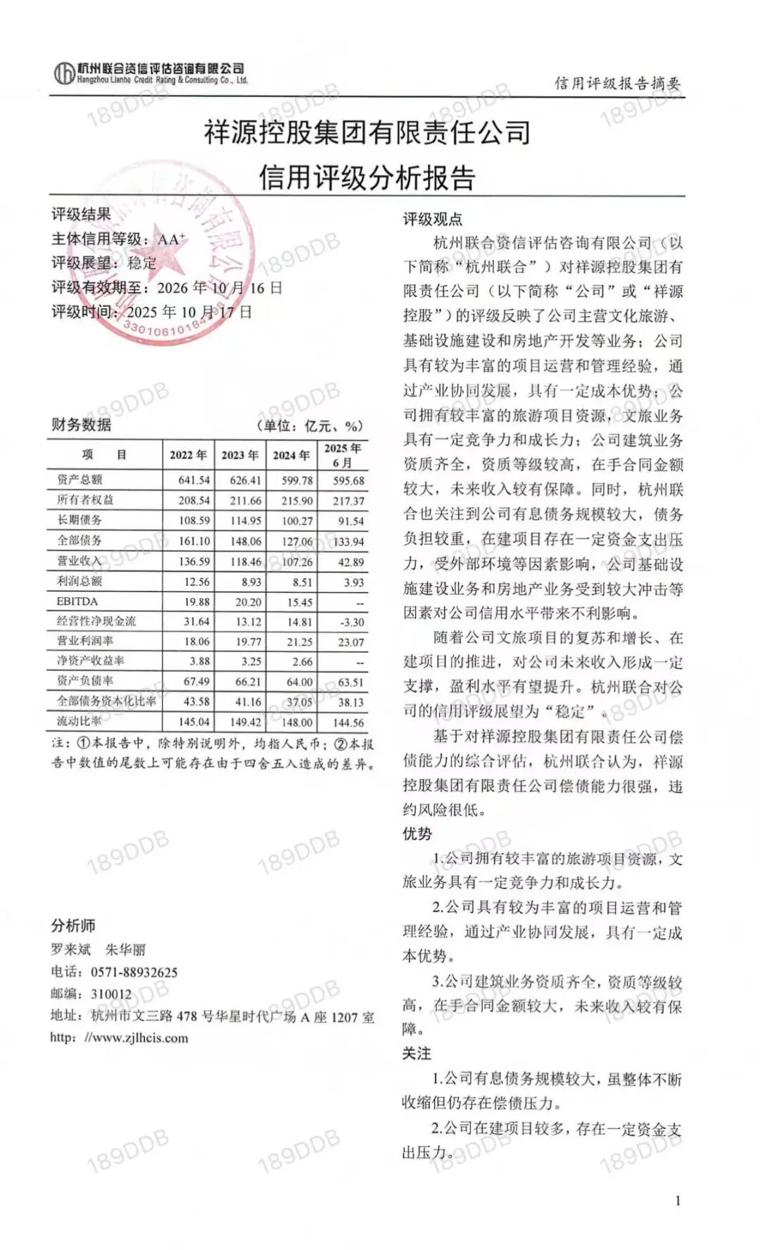 值得一提的是,杭州兼并资信评估参谋有限公司2025年10月17日出具的评级论说夸耀,祥源集团信用评级为AA+,评级琢磨为踏实,评级有用期为一年。